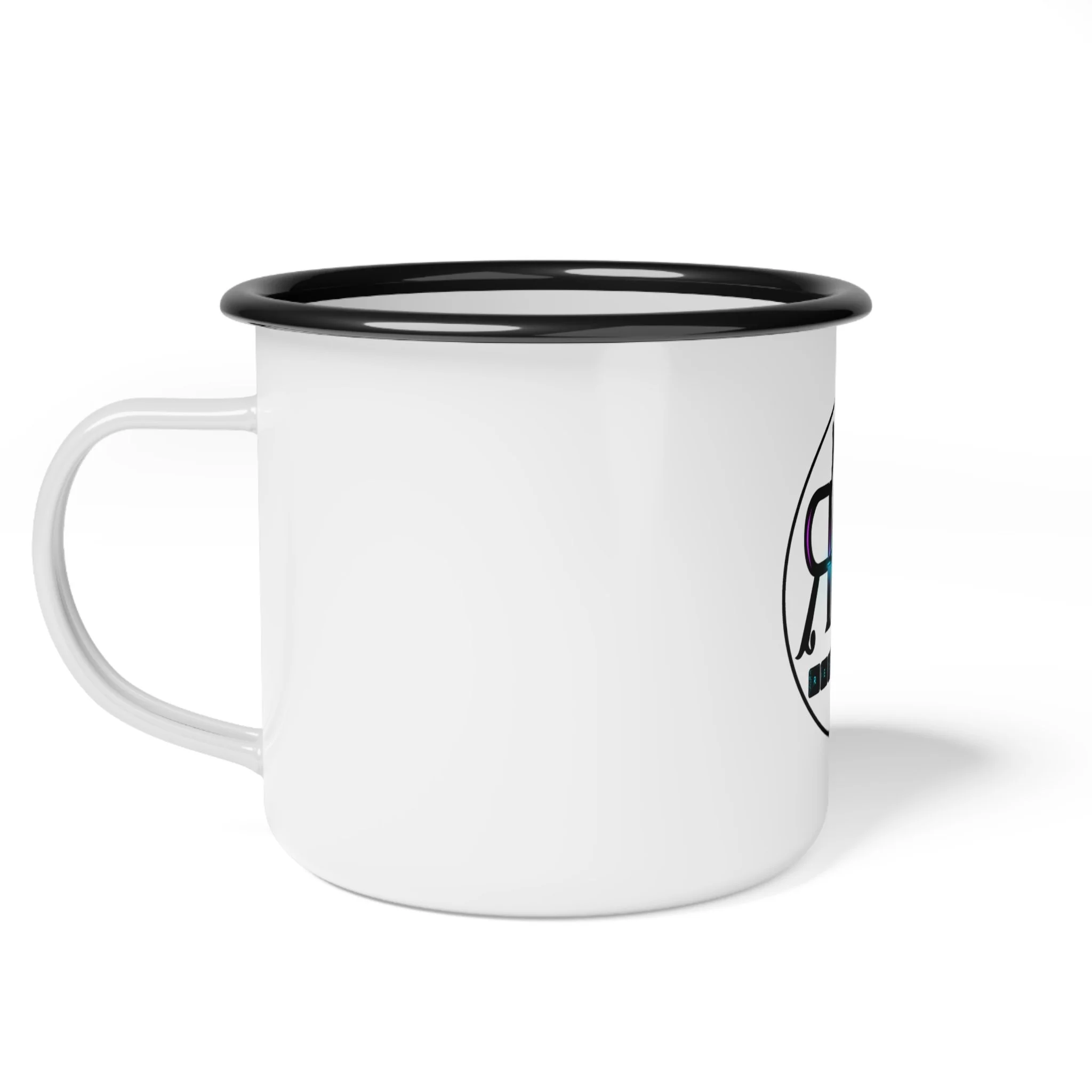 Enamel Camp Cup — Retro Mountain Lake Logo Camper Mug